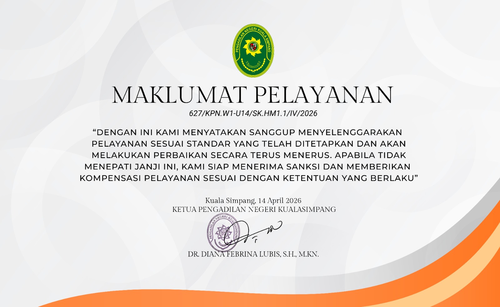 Selamat Mengembang Amanah Ketua Pengadilan Negeri Kuala Simpang