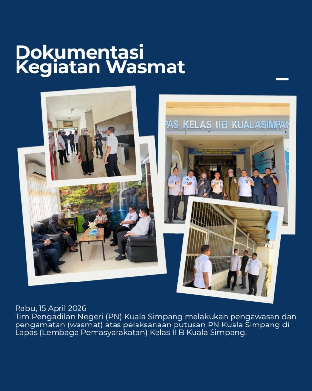 Kuala Simpang, 15 April 2026 - Tim Pengadilan Negeri Kuala Simpang melakukan pengawasan dan pengamatan (wasmat) atas pelaksanaan putusan PN Kuala Simpang di Lapas (Lembaga Pemasyarakatan) Kelas II B Kuala Simpang.