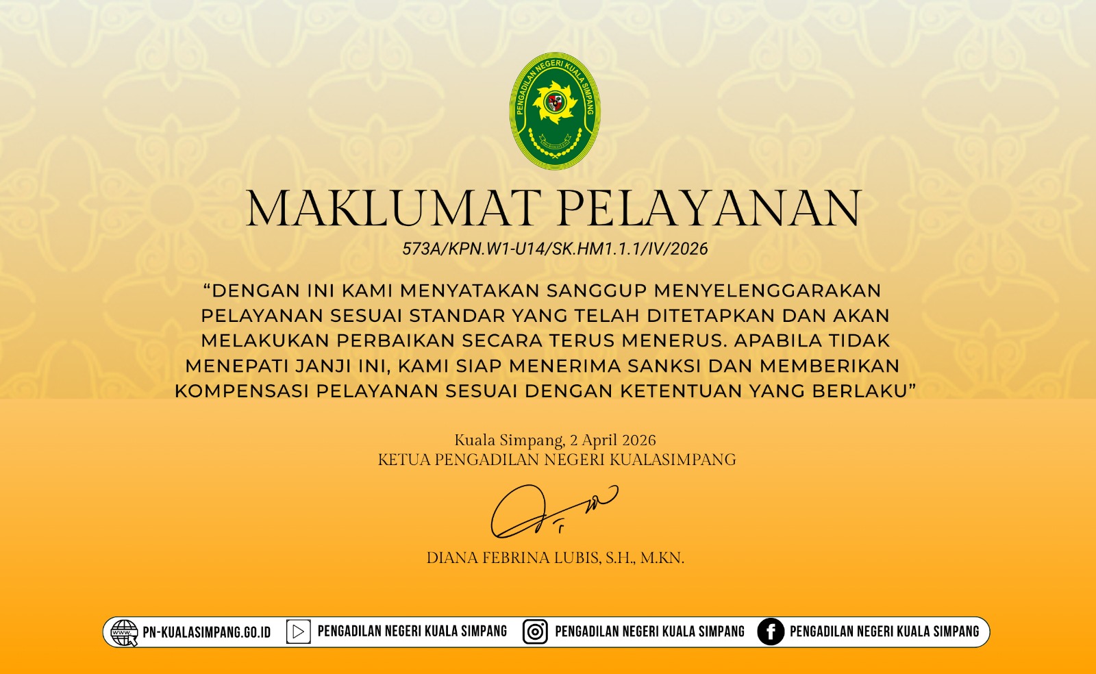 Selamat Mengembang Amanah Ketua Pengadilan Negeri Kuala Simpang