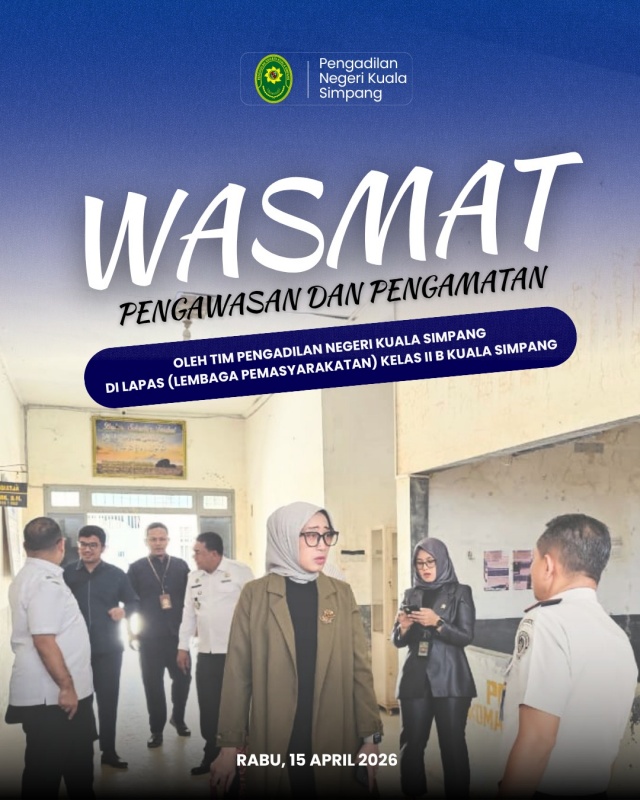 Kuala Simpang, 15 April 2026 - Tim Pengadilan Negeri Kuala Simpang melakukan pengawasan dan pengamatan (wasmat) atas pelaksanaan putusan PN Kuala Simpang di Lapas (Lembaga Pemasyarakatan) Kelas II B Kuala Simpang.