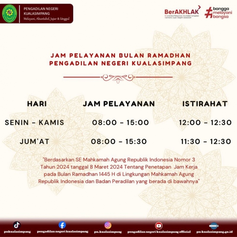 Pengumuman Jam Layanan Kerja Selama Bulan Ramadhan Tahun 2024